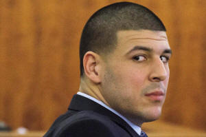 Former NFL player Aaron Hernandez looks at the gallery during the