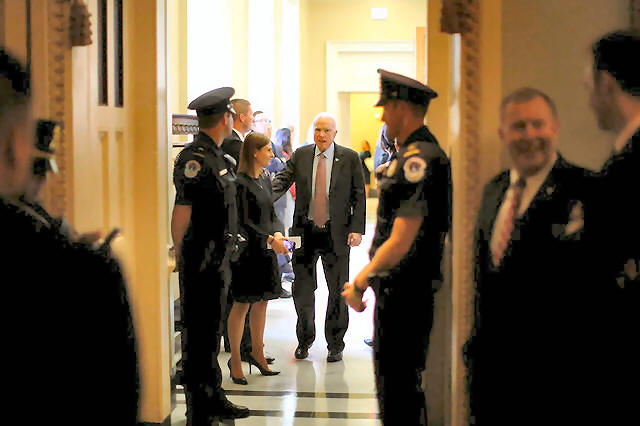 U.S. Senator John McCain (R-AZ) (C) departs after the weekly