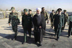 Iranian President Hassan Rouhani arrives to attend an armed forces