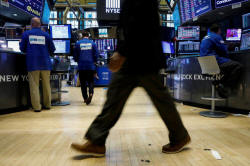 Traders work on the floor of the New York Stock Exchange (NYSE) in