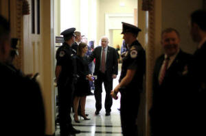U.S. Senator John McCain (R-AZ) (C) departs after the weekly