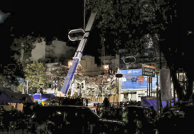 collapsed building, after an earthquake in Mexico City, Mexico
