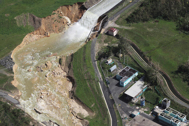 An aerial view shows the damage to the Guajataca dam in the