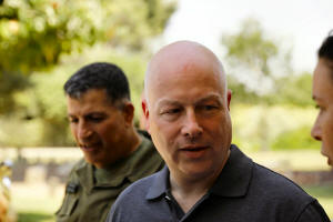Jason Greenblatt (C), U.S. President Donald Trump's Middle East envoy,