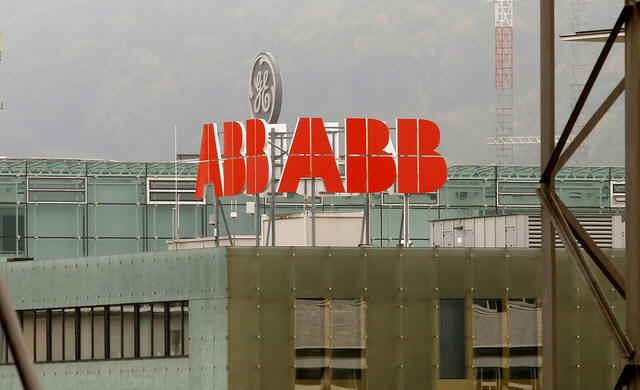 The logo of Swiss power technology and automation group ABB is seen