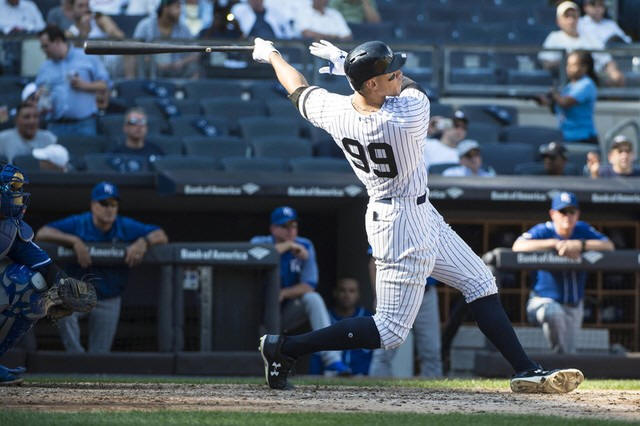 Judge tied McGwire by hitting a full-count fastball from Jakob Junis
