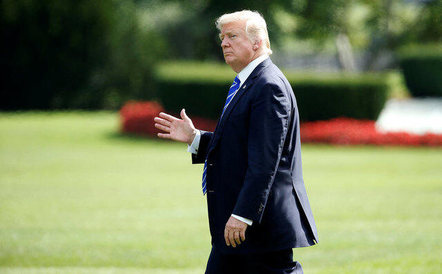 U.S. President Donald Trump walks to Marine One as he departs for