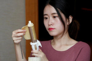 In one video, Ms Yeah uses an iron to grill strips of beef on