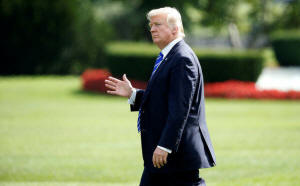President Donald Trump walks to Marine One as he departs for New