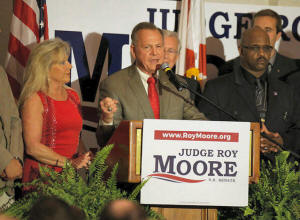 the state's top judge, Moore won election with a fierce anti-Washington