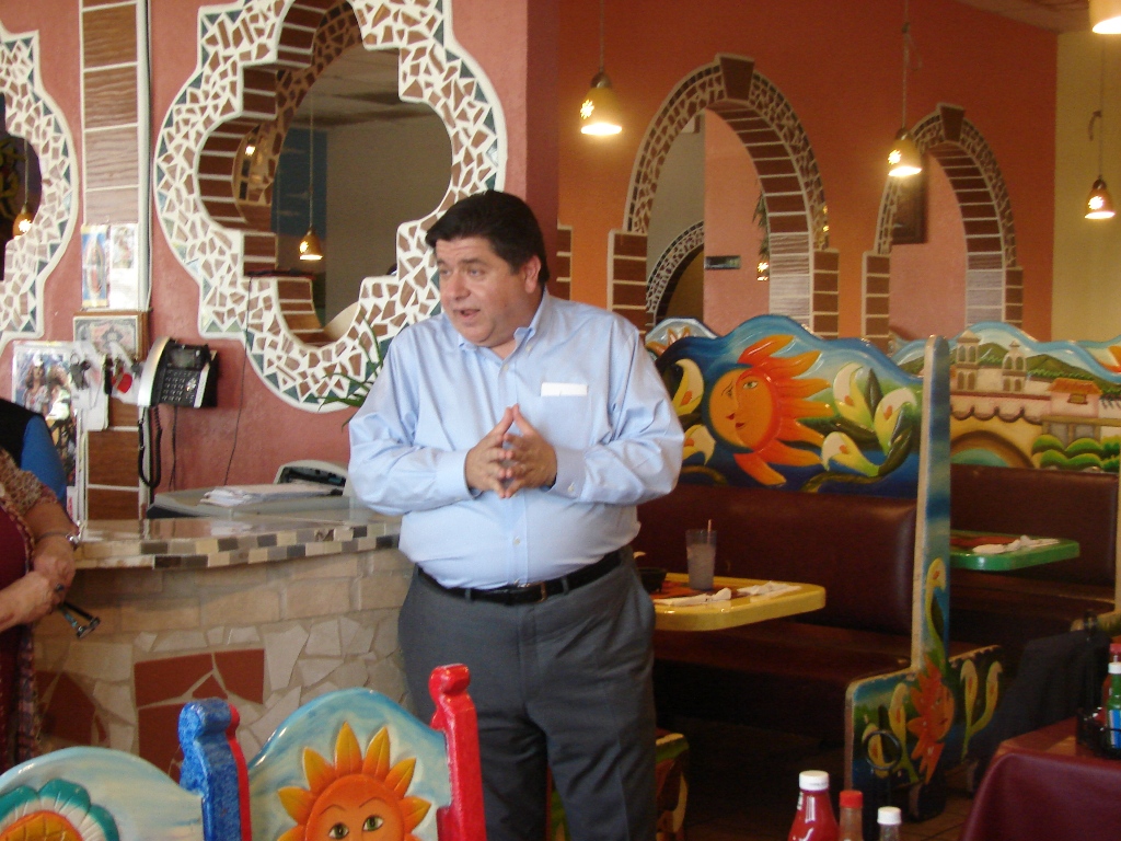 [September 27, 2017]   LINCOLN - J.B. Pritzker, Democratic Party candidate for governor, traveled to Lincoln Tuesday afternoon to meet with Logan County Democrats at the Rio Grande Restaurant. He was introduced by Rebecca Drake, chair of the Logan County Democratic Party.