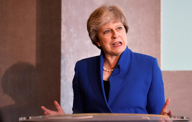 Britain's Prime Minister Theresa May speaks at an event to mark the