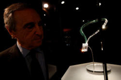 white gold, diamond and emerald necklace, will be shown in