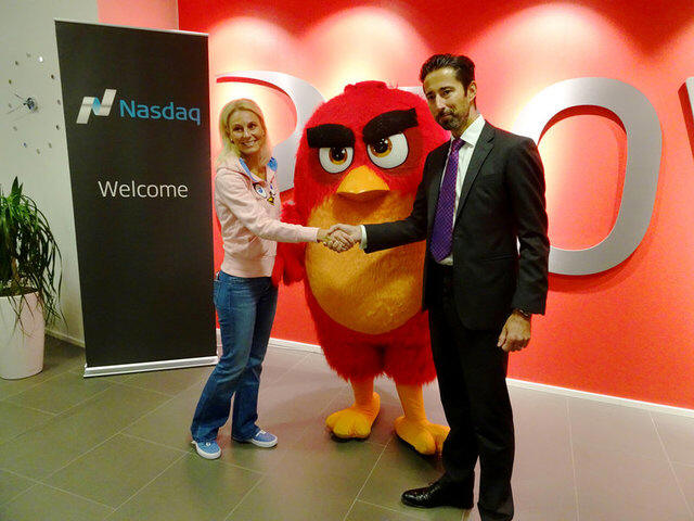 Rovio CEO Kati Levoranta and Nasdaq Helsinki President Henrik Husman
