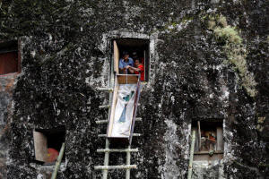 The scene is part of an ancient Torajan ritual known as "Ma'nene", in