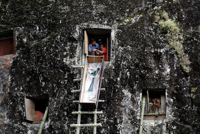 during an ancient Torajan ritual known as "Ma'nene", near Rantepao,