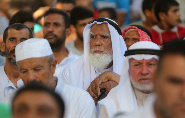 Palestinians attend a reconciliation ceremony in Khan Younis in the