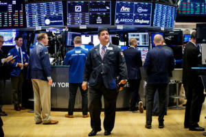 Traders work on the floor of the New York Stock Exchange (NYSE) in