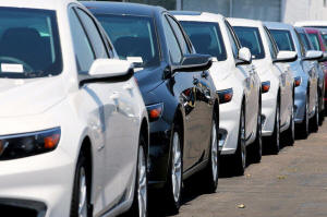 New cars are shown for sale at a Chevrolet dealership in National