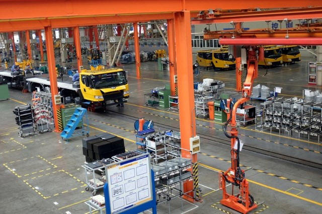 A factory floor of XCMG Group is seen in Xuzhou, Jiangsu province,